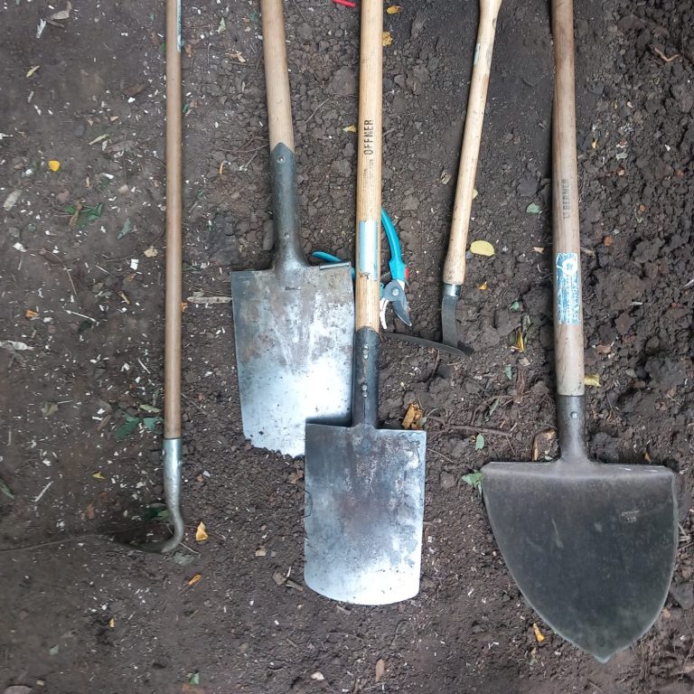 Gegraben wurde mit Schaufel, Kelle, Spaten und einem sogenannten "Oni".